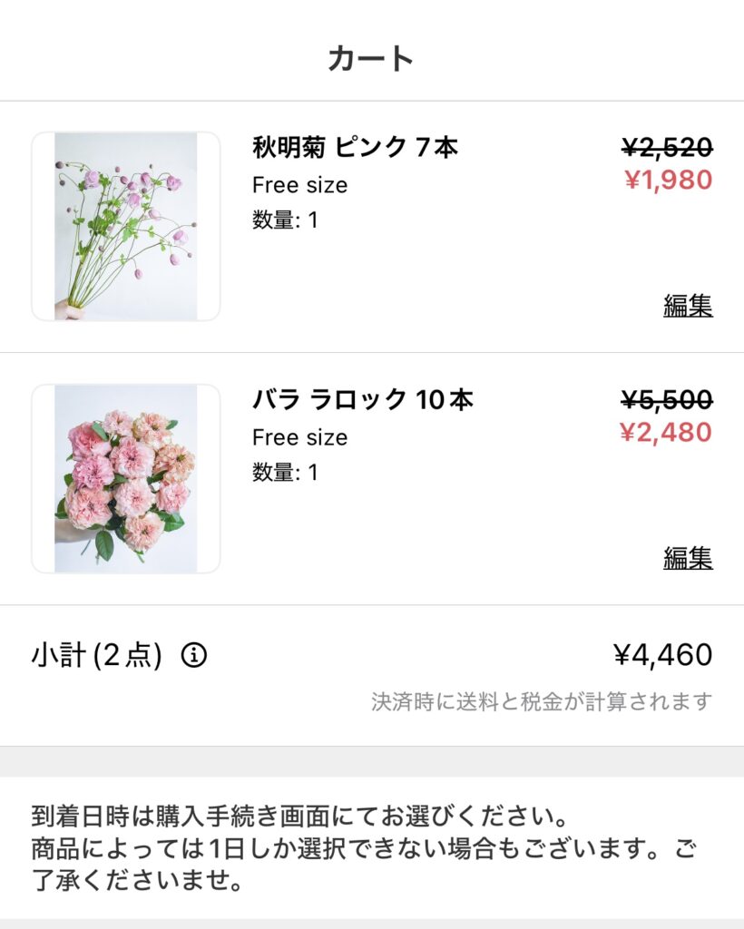 - 2種類の花を注文、箱は別々になって一種類ずつで届きました。