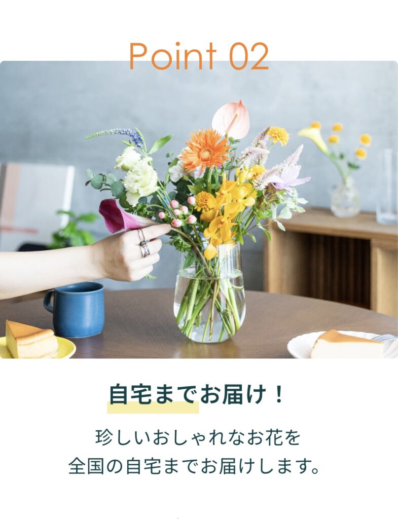 - アプリから好きなお花を見つけて注文すれば自宅にお花が届きます。